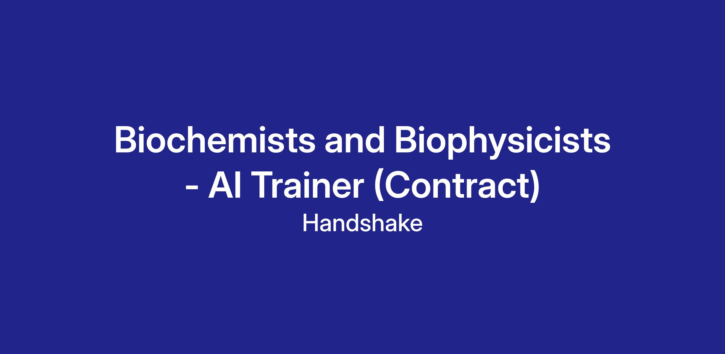 Handshake is recruiting Biochemist and Biophysicist Professionals to contribute to an hourly, temporary AI research project—but there’s no AI experience needed. In this program, you’ll leverage your professional experience to evaluate what AI models produce in your field, assess content related to your field of work, and deliver clear, structured feedback that strengthens the model’s understanding of your workplace tasks and language. The Handshake AI opportunity runs year-round, with project opportunities opening periodically across different areas of expertise.