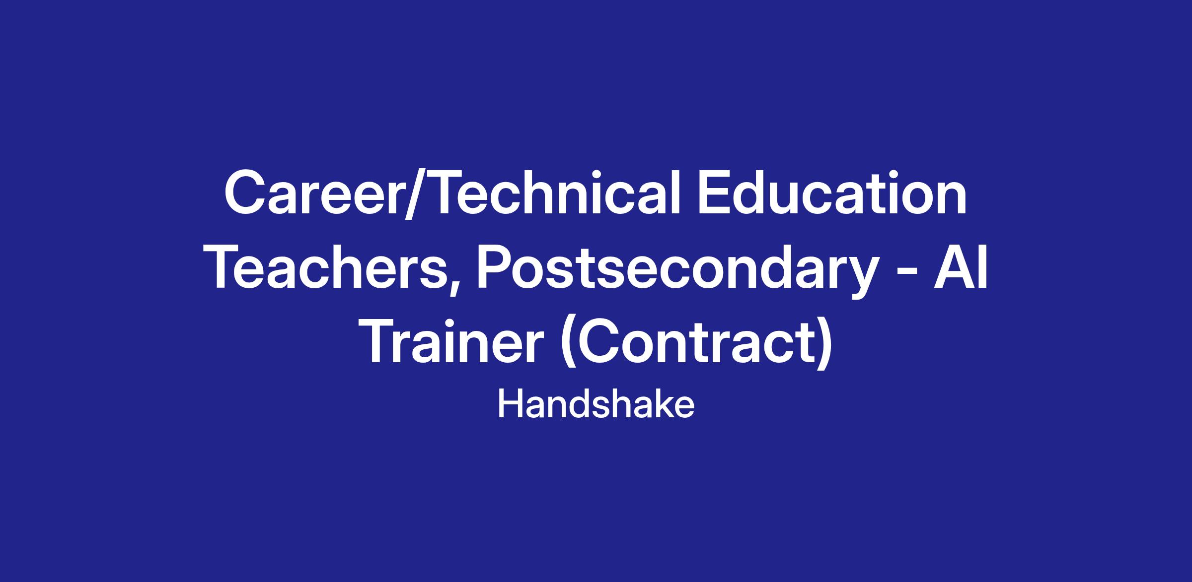 Handshake is recruiting College Career/Technical Education Professors to contribute to an hourly, temporary AI research project—but there’s no AI experience needed. In this program, you’ll leverage your professional experience to evaluate what AI models produce in your field, assess content related to your field of work, and deliver clear, structured feedback that strengthens the model’s understanding of your workplace tasks and language. The Handshake AI opportunity runs year-round, with project opportunities opening periodically across different areas of expertise.