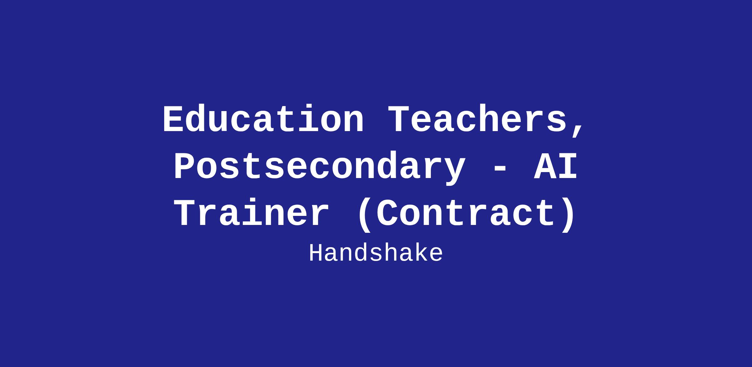 Handshake is recruiting Education Professors to contribute to an hourly, temporary AI research project—but there’s no AI experience needed. In this program, you’ll leverage your professional experience to evaluate what AI models produce in your field, assess content related to your field of work, and deliver clear, structured feedback that strengthens the model’s understanding of your workplace tasks and language. The Handshake AI opportunity runs year-round, with project opportunities opening periodically across different areas of expertise.