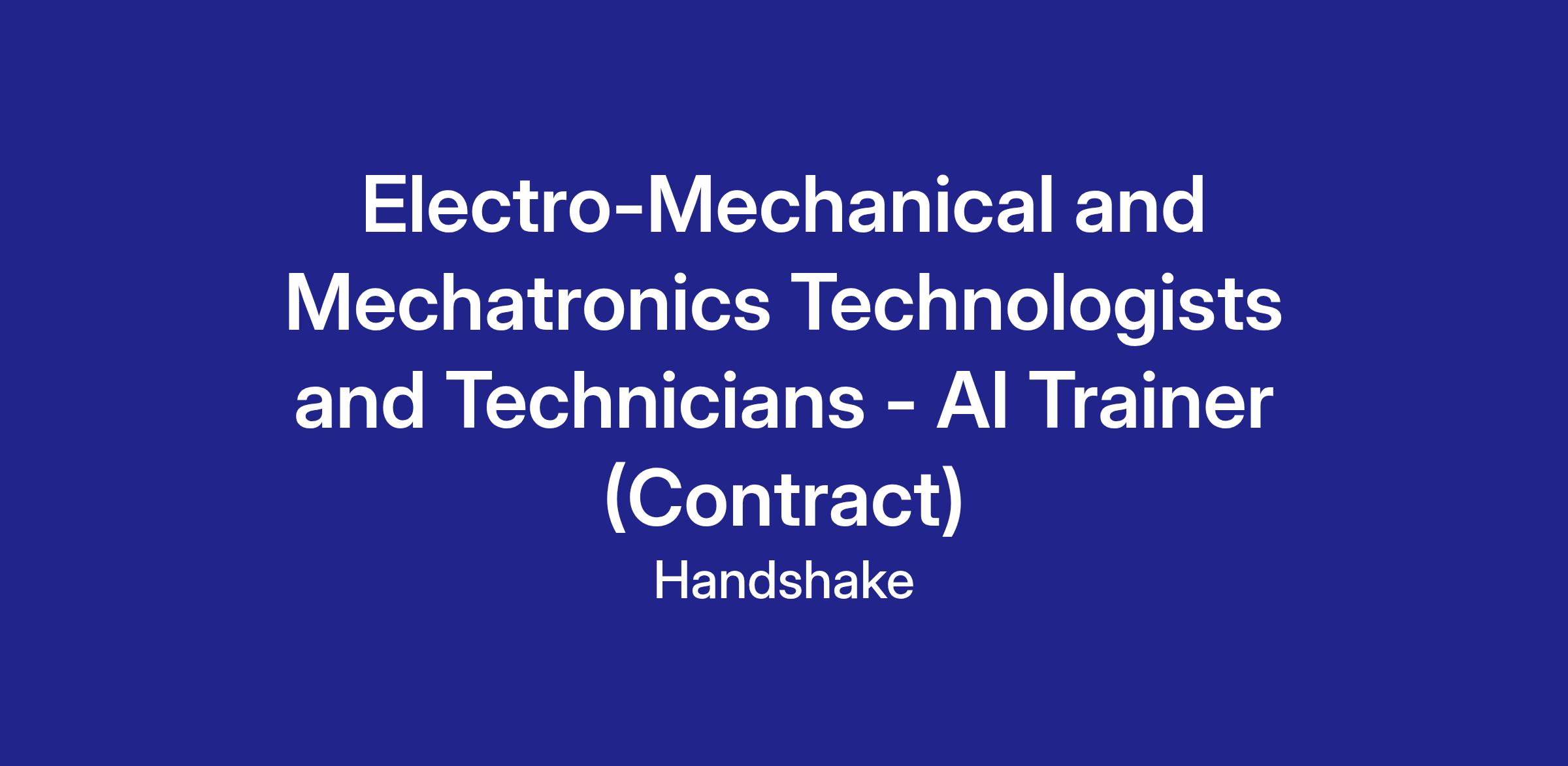 Handshake is recruiting Electro-Mechanical and Mechatronics Technologists and Technician Professionals to contribute to an hourly, temporary AI research project—but there’s no AI experience needed. In this program, you’ll leverage your professional experience to evaluate what AI models produce in your field, assess content related to your field of work, and deliver clear, structured feedback that strengthens the model’s understanding of your workplace tasks and language. The Handshake AI opportunity runs year-round, with project opportunities opening periodically across different areas of expertise.