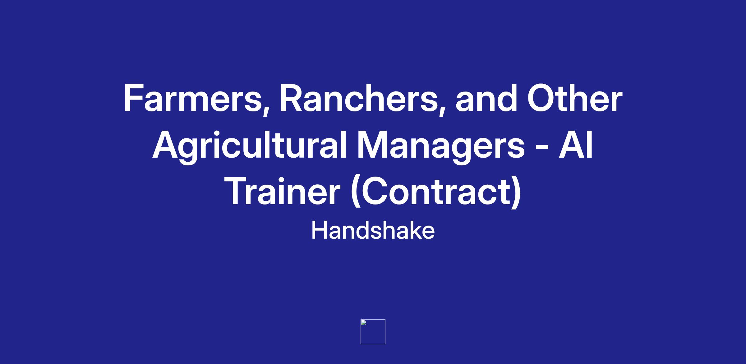 Handshake is recruiting Farmers, Ranchers, and Other Agricultural Manager Professionals to contribute to an hourly, temporary AI research project—but there’s no AI experience needed. In this program, you’ll leverage your professional experience to evaluate what AI models produce in your field, assess content related to your field of work, and deliver clear, structured feedback that strengthens the model’s understanding of your workplace tasks and language. The Handshake AI opportunity runs year-round, with project opportunities opening periodically across different areas of expertise.