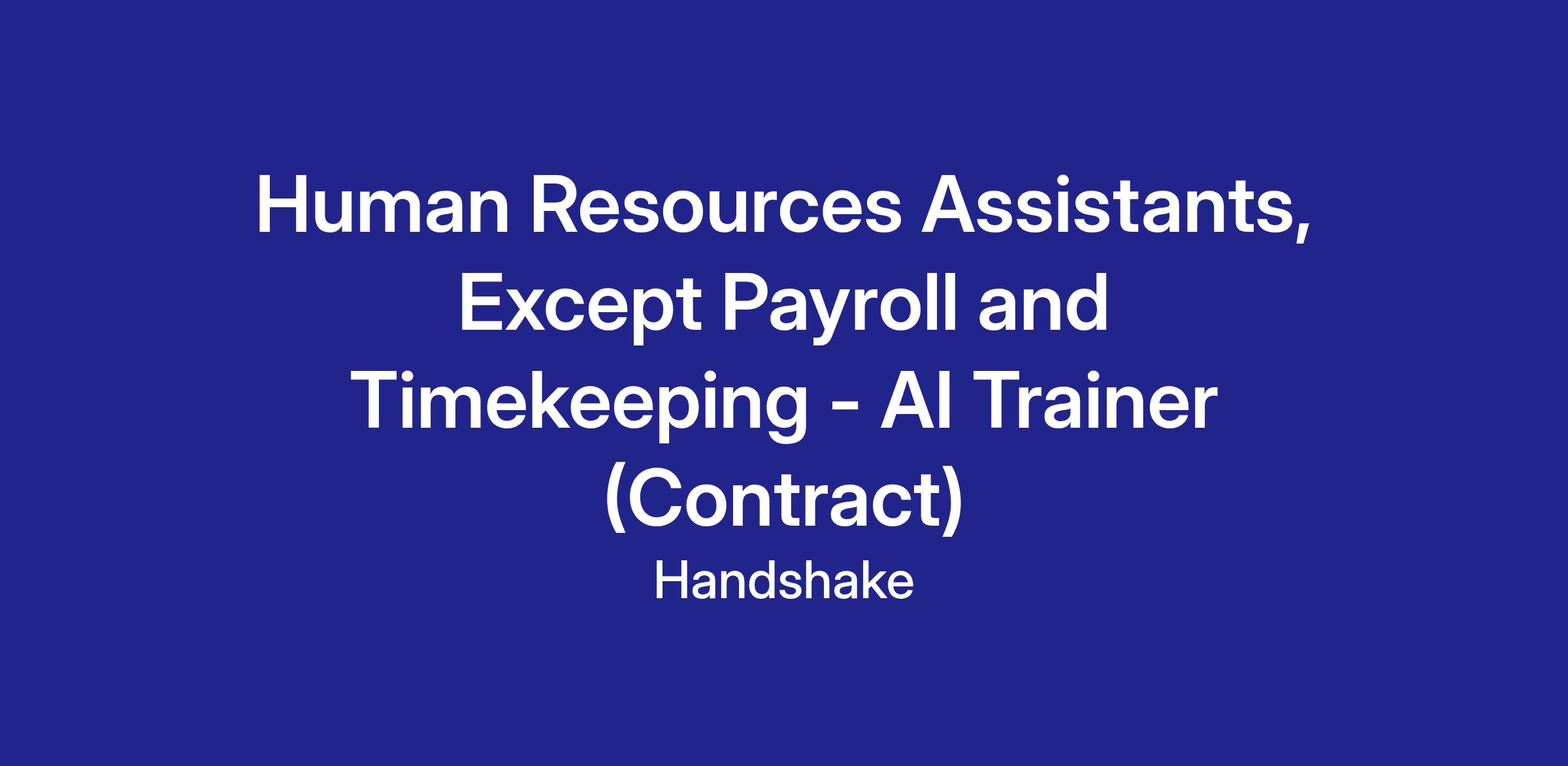 Handshake is recruiting Human Resources Assistants, Except Payroll and Timekeeping Professionals to contribute to an hourly, temporary AI research project—but there’s no AI experience needed. In this program, you’ll leverage your professional experience to evaluate what AI models produce in your field, assess content related to your field of work, and deliver clear, structured feedback that strengthens the model’s understanding of your workplace tasks and language. The Handshake AI opportunity runs year-round, with project opportunities opening periodically across different areas of expertise.