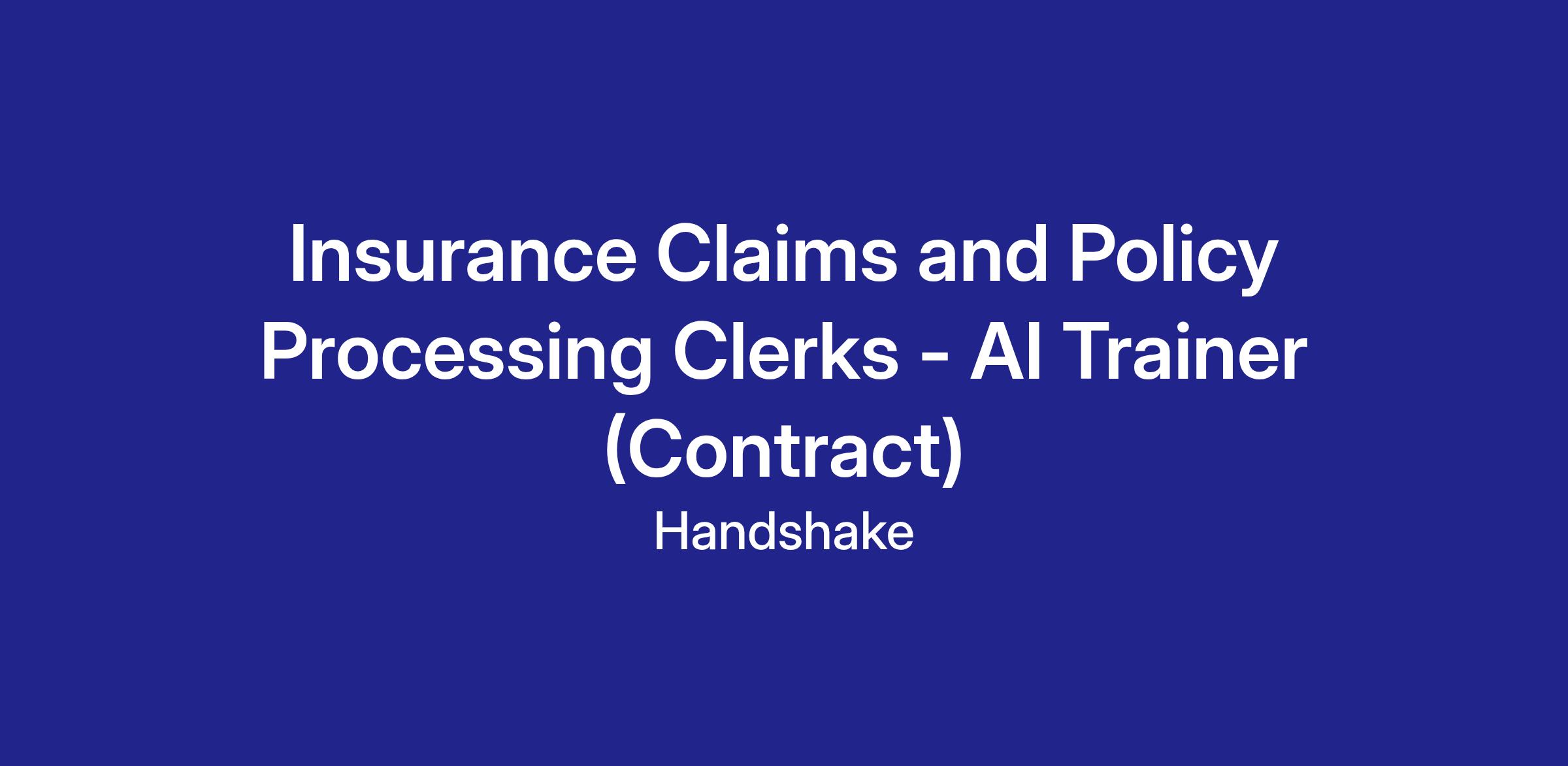 Handshake is recruiting Insurance Claims and Policy Processing Clerk Professionals to contribute to an hourly, temporary AI research project—but there’s no AI experience needed. In this program, you’ll leverage your professional experience to evaluate what AI models produce in your field, assess content related to your field of work, and deliver clear, structured feedback that strengthens the model’s understanding of your workplace tasks and language. The Handshake AI opportunity runs year-round, with project opportunities opening periodically across different areas of expertise.