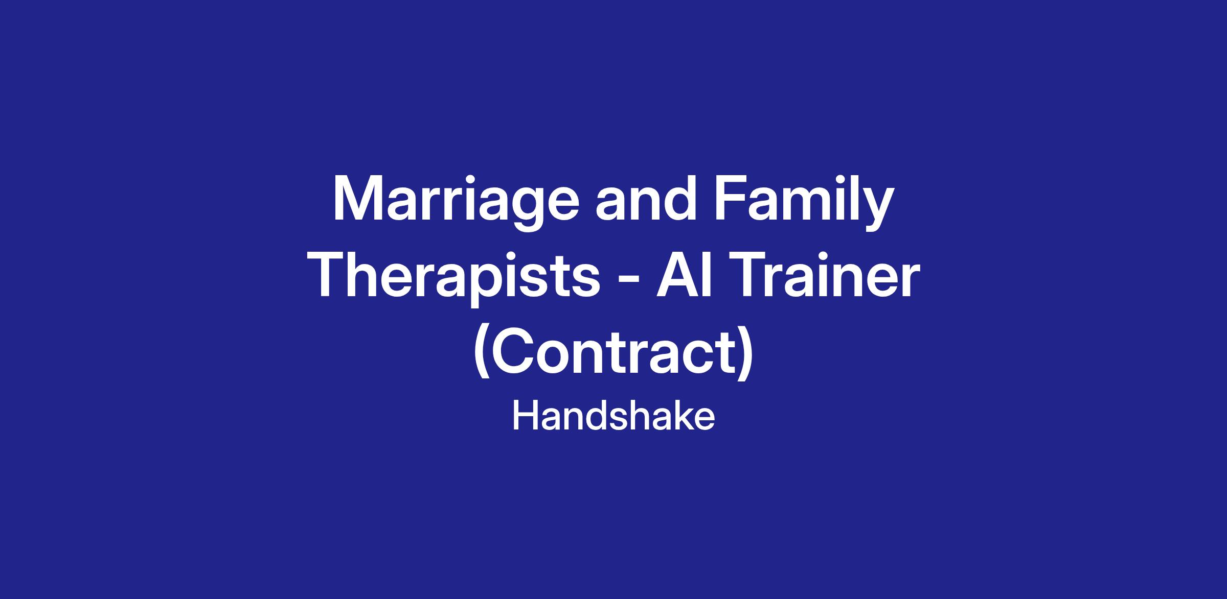 Handshake is recruiting Marriage and Family Therapist Professionals to contribute to an hourly, temporary AI research project—but there’s no AI experience needed. In this program, you’ll leverage your professional experience to evaluate what AI models produce in your field, assess content related to your field of work, and deliver clear, structured feedback that strengthens the model’s understanding of your workplace tasks and language. The Handshake AI opportunity runs year-round, with project opportunities opening periodically across different areas of expertise.