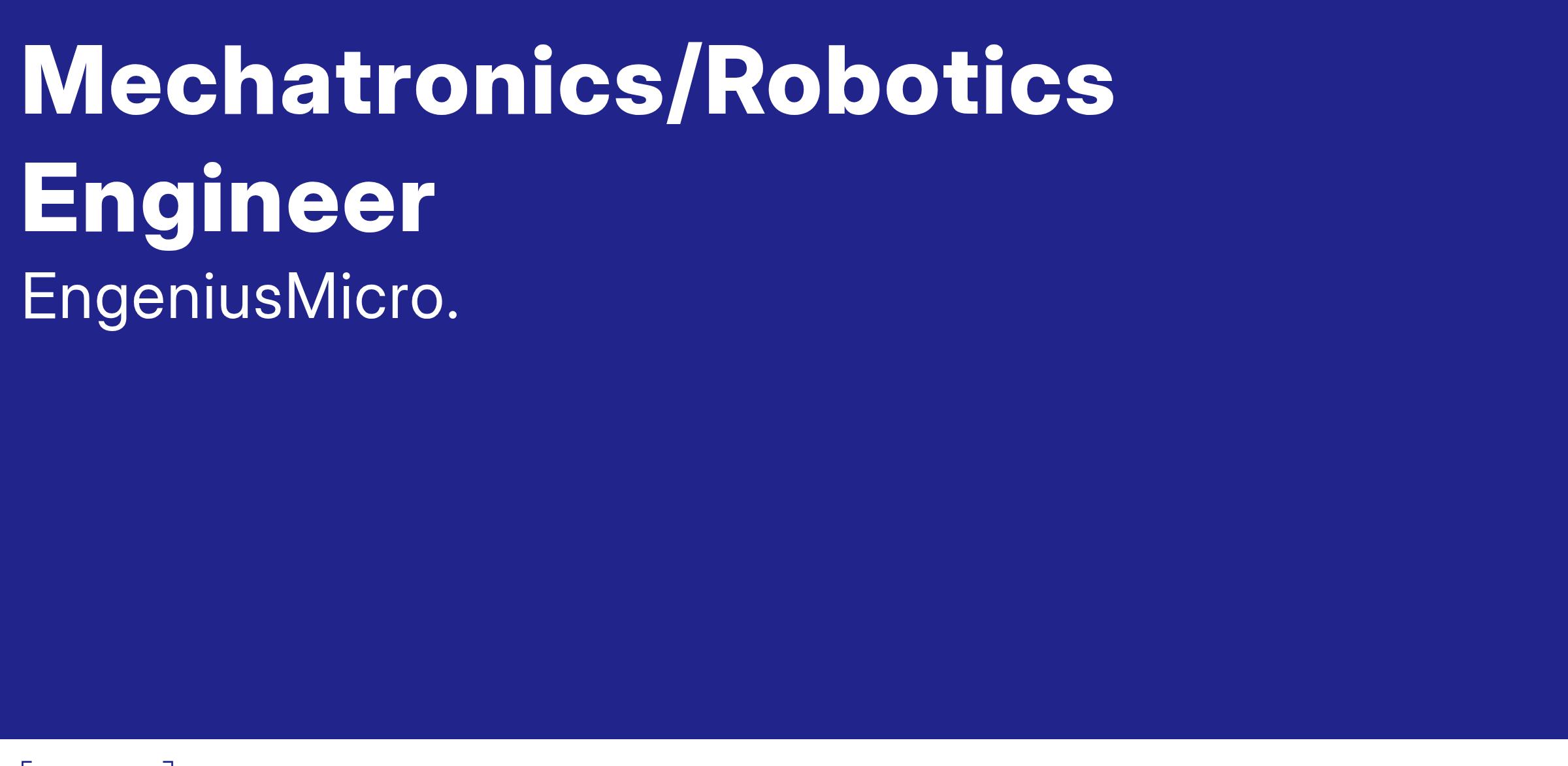 - Bachelor's degree in Mechanical Engineering, Electrical Engineering, Robotics, or Computer Science