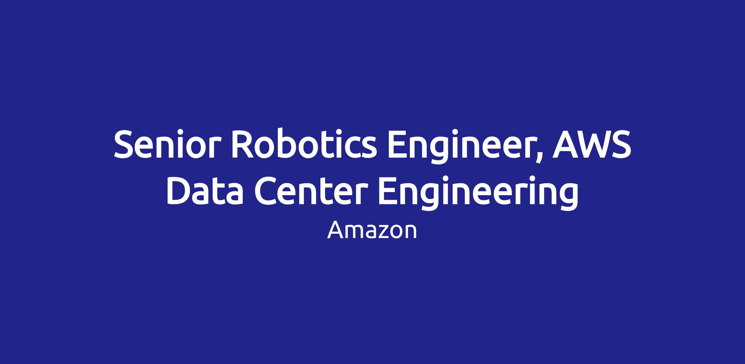 Within AIS and Data Center Engineering, the Robotics Products and Services team is growing in maturity, so now is the time to join and drive game changing and rapid innovation used by AWS globally. Our designs will fundamentally change the data center, providing operational and financial benefits that are critical to the success of the AWS business and its millions of customers. Our engineers solve challenging technology problems and take big bets on new concepts, enabling AWS services to continue to revolutionize the industry. This role provides the opportunity to be a robotics engineer and the technical lead driving the innovations being developed and deployed in the next generation data centers.