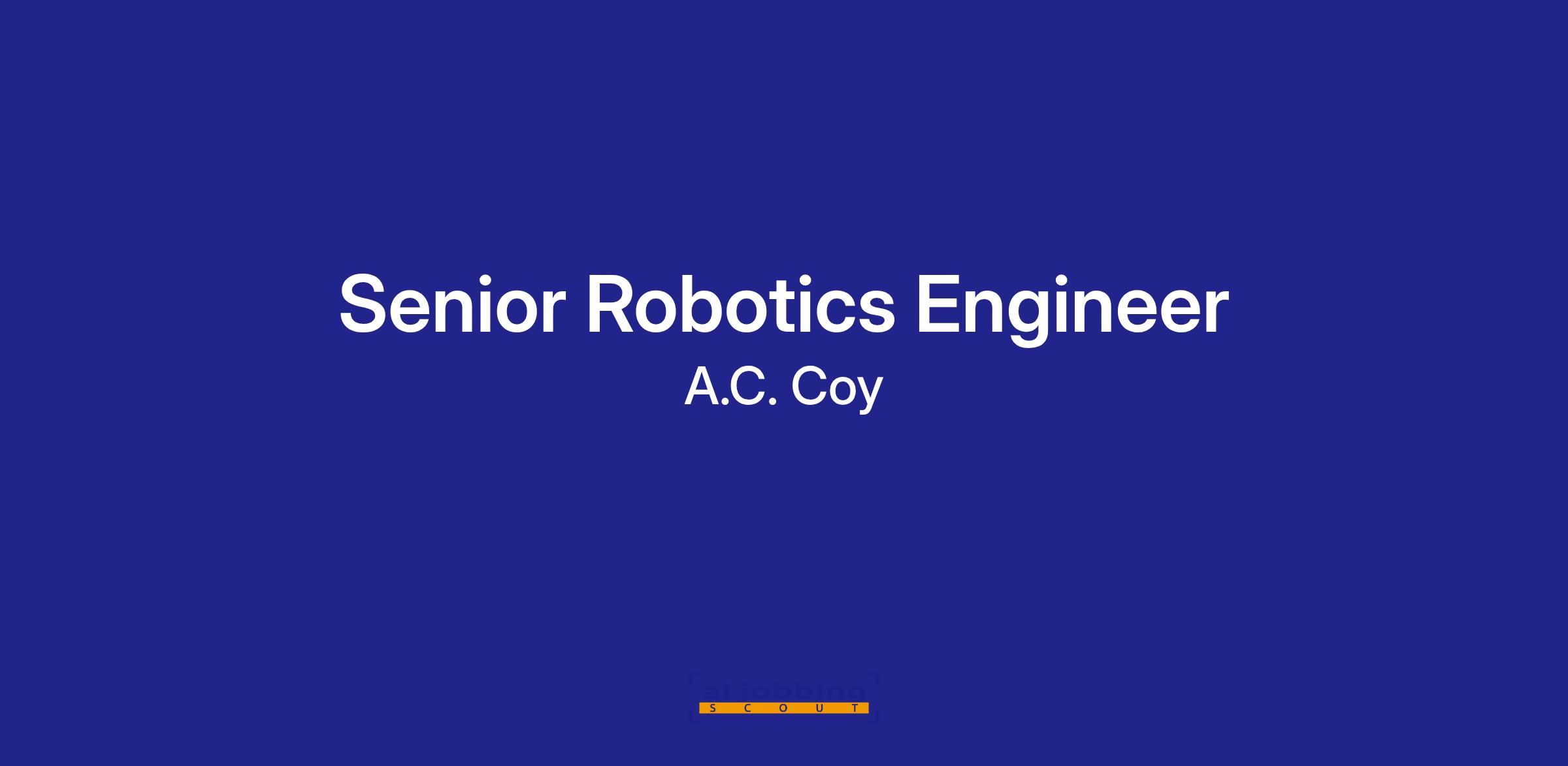 The A.C.Coy company has an immediate opening for a Senior Robotics Engineer. Candidates will design and implement autonomy solutions across diverse robotic platforms, driving innovation in multi-robot coordination, motion planning, and adaptive control. Ideal candidates will have a strong background developing complex software systems in robotics. AI/ML, or automation.