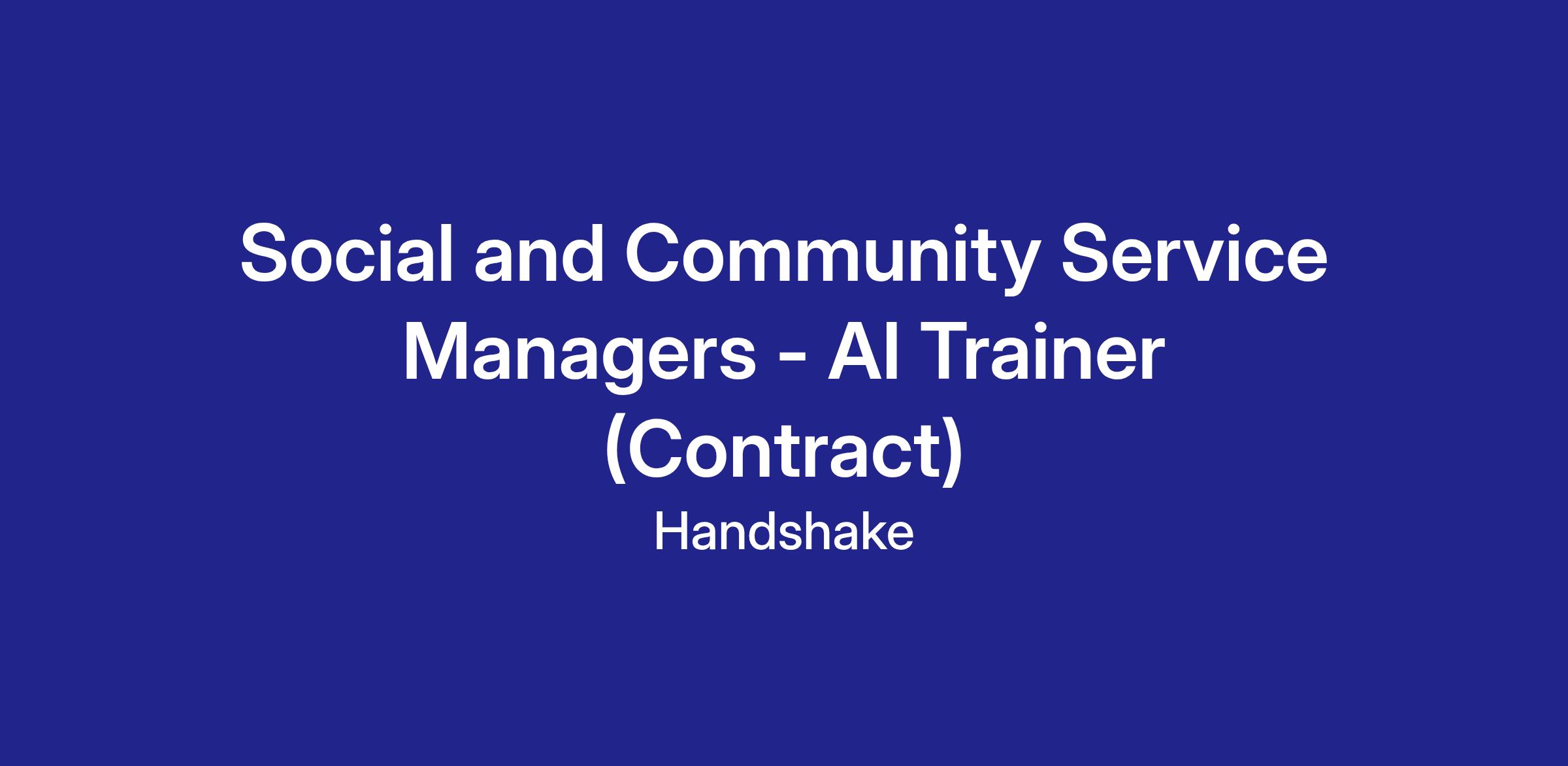 Handshake is recruiting Social and Community Service Manager Professionals to contribute to an hourly, temporary AI research project—but there’s no AI experience needed. In this program, you’ll leverage your professional experience to evaluate what AI models produce in your field, assess content related to your field of work, and deliver clear, structured feedback that strengthens the model’s understanding of your workplace tasks and language. The Handshake AI opportunity runs year-round, with project opportunities opening periodically across different areas of expertise.