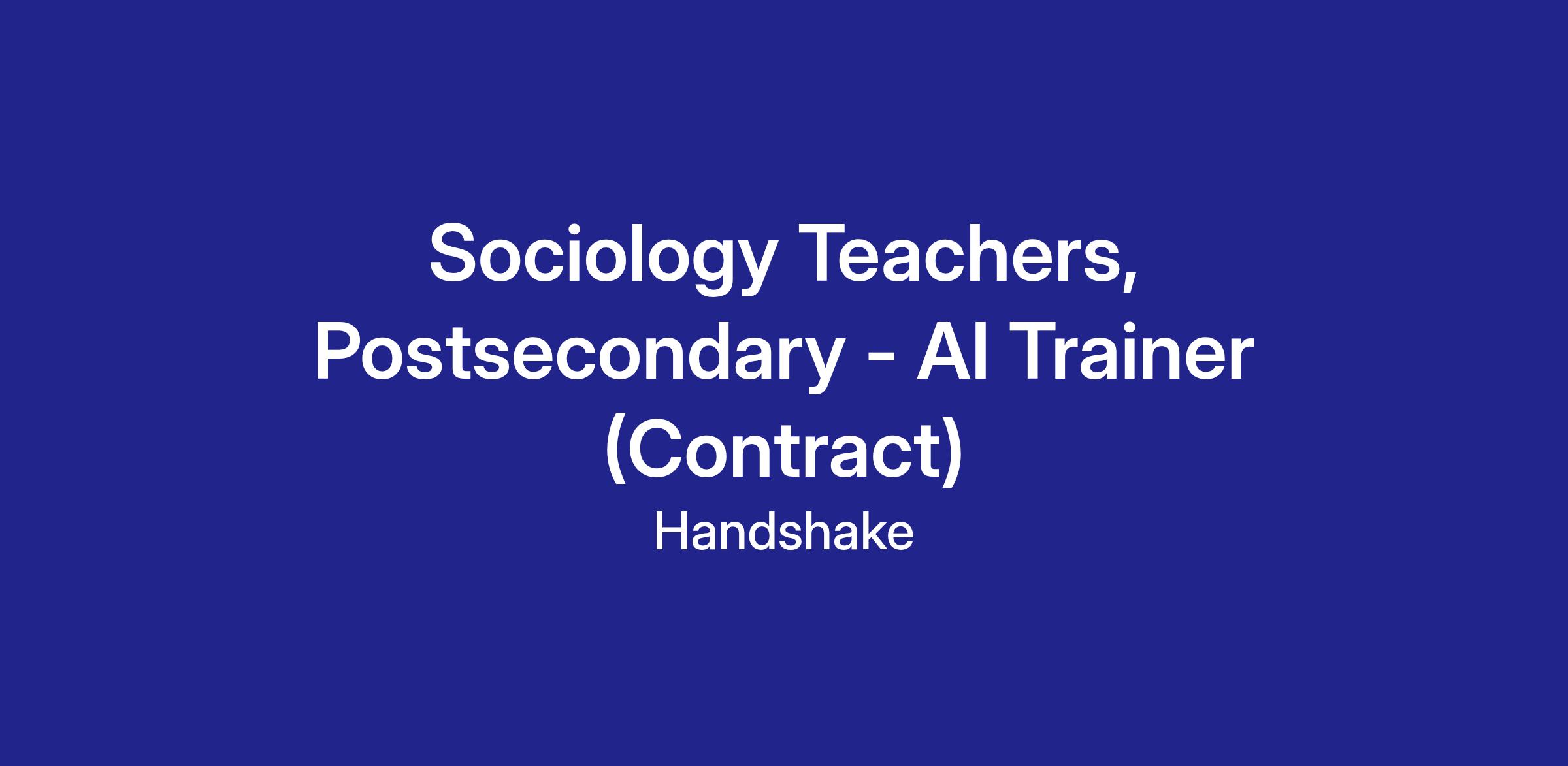 Handshake is recruiting Sociology Professors to contribute to an hourly, temporary AI research project—but there’s no AI experience needed. In this program, you’ll leverage your professional experience to evaluate what AI models produce in your field, assess content related to your field of work, and deliver clear, structured feedback that strengthens the model’s understanding of your workplace tasks and language. The Handshake AI opportunity runs year-round, with project opportunities opening periodically across different areas of expertise.